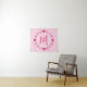 Essa tapeçaria incrível apresenta uma imagem de arte digital de um grupo de flores e borboletas, cada uma em uma tonalidade de rosa para representar uma menina. As flores incluem Dahlias, lírios de água, não me esqueça e crisântemos.
