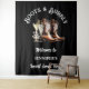 Um par de botas de cowgirl de couro trabalhado com um padrão floral ornamentado branco tem um copo de espumante e martini chic ao lado dele, definido acima de modelos de texto branco editáveis que podem ser personalizados para se adequar à sua celebração especial. Este enfeite de parede elegante é ideal para um evento especial temático ocidental, "boots and bling" ou "boots and bubbly" também.