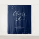 Esta tapeçaria moderna é perfeita para uma festa de aniversário com tema de cores azul marinho e prata. Seus convidados vão adorar tirar uma foto com este cenário sofisticado e lembrar do seu dia especial. O design apresenta tipografia dourada "Brinde a 50 anos" e gráficos de confetes. Você pode personalizar o nome, evento e data na parte inferior da tapeçaria.