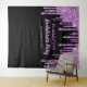 Tapeçaria de cabine de fotos personalizada chic e divertida para a despedida de solteira, apresentando brilho roxo falso brilhante pingando dos cantos contra um fundo preto e "Festa de Despedida de Solteira" em uma escrita roxa. Você pode personalizar ainda mais com seu nome e data da festa.