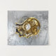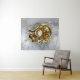 Cabeça conceitual, mecânica, humana com manômetro antigo e engrenagens metálicas contra fundo industrial das cinzas. Estilo Steampunk.