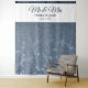 Sr. e Sra. elegante cabine de foto de casamento azul poeira com fundo branco. Belo padrão elegante, moderno, tendência, estiloso. Metalizado floral suculento chique. Para alterar a tipografia, clique em editar design. Direitos autorais da imagem Marg Seregelyi Photography.