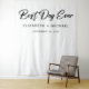 Tapeçaria simples de fundo para cabine de foto de casamento com "Melhor Dia de Sempre" em um script moderno e elegante, seus primeiros nomes e a data.