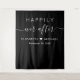 Tapeçaria preta simples para recepção de casamento ou festa com foto de fundo com "Felicidade Eterna" em uma mistura de tipografia branca simples e um script branco da moda com floreios, seus primeiros nomes e a data do evento.