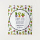 Tapeçaria de aniversário com uma ilustração caprichosa apresentando 3 pequenos cactos felizes sentados em seus próprios vasos de flores. Cada um deles tem suas próprias expressões únicas sorrindo e parecendo felizes.