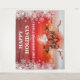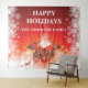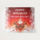 Traga o espírito do Natal para sua casa ou escritório com este lindo banner em vermelho, branco e dourado falso, apresentando uma linda caixa de presente vermelha que foi aberta e tem faíscas brancas flutuando para fora do topo. A caixa tem a palavra "Joy" escrita nela em uma cor dourada fosca e repousa contra uma superfície branca brilhante acima da qual há um fundo vermelho com grandes modelos brancos para seu cartão de Natal de sua família ou empresa. Cada lado do fundo é preenchido com delicados flocos de neve brancos. Este design elegante e festivo é perfeito para a temporada de férias.