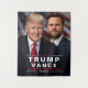 Donald Trump e JD Vance com fundo de bandeira americana patriótica. Material de comício eleitoral de 2024 para apoiadores republicanos, eventos de campanha e arrecadação de fundos.