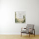 Tapeçaria de casamento personalizada retrata um design casual de aquarela da natureza, incluindo um simples fluxo de água cercado por árvores de pinho da floresta e montanhas em tons terrosos de sage, verde e bege. Ela apresenta o versículo bíblico Cântico dos Cânticos 3:4, "Encontrei aquele que a minha alma ama". Personalize a tapeçaria com nomes.