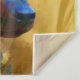 Uma pintura digital que funde o hiperrealismo com uma abstração ousada e contemporânea. Este retrato cativante de um Cachorro Selvagem Africano apresenta um confronto harmonioso de matizes vibrantes azuis profundos, ouros e verdes elétricos que inspiram vida em cada fio de pele e sombra. As pinceladas texturizadas, quase cúbicas, adicionam profundidade e movimento, transformando um simples perfil canino em uma afirmação de beleza bruta e intensidade emocional.