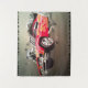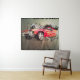 Um carro tipo rodas quentes batendo na parede traz um entusiasmo extra para o quarto do seu filho. O carro vermelho com chamas laranja e motor exposto está quebrando através de uma parede de cinzas esverdeada com estilo.