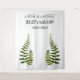 Painel de fundo de casamento Mr & Mrs com roteiro clássico. Painel de caligrafia preto e branco. Painel de casamento elegante, rústico, com folhagem verde de feto em aquarela, moderno, para cabine de fotos. Você pode personalizá