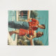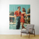 Imagem vintage de meados do século XX com um homem charmoso e uma mulher com um vestido vermelho tendo diversão ao lado da piscina