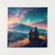 Uma bela pintura digital de um casal sentado no telhado à noite, olhando para as estrelas. O céu está cheio de estrelas de todas as cores, e a Via Látea é visível a distância. O casal está sentado próximo, e eles parecem estar gostando da companhia um do outro e da beleza do céu noturno.