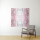 Design elegante de tapeçaria de casamento com ornamentos metálicos prateados brilhantes em um fundo metálico gradiente rosa. O texto é totalmente personalizável.