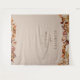 Este tapete de casamento elegante | fundo de cabine de fotos apresenta folhas queimadas de cor laranja e terracota pintadas à mão em aquarela, dálias creme e bege, e rosas de cor enferrujada em um fundo taupe com os nomes dos noivos e a data do casamento. Encontre itens correspondentes na Coleção Romance de Outono Taupe.