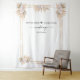Design único e elegante com orquídea branca aquarela, rosas cor-de-rosa, grama de pampas do deserto, folhas secas, moldura poligonal dourada falsa, tipografia moderna de "casamento", fundo branco. Use a ferramenta Personalizar para adicionar suas informações. Para itens correspondentes, visite minha Coleção Floral de Grama de Pampas.