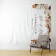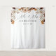 tapeçaria de casamento russa, com uma borda de flores e folhagem de cor d'água em tons de marfim, creme, marrom e laranja-ferrugem. "Sr. e Sra." é exibido na caligrafia moderna com seu sobrenome e data de casamento mostrados abaixo. A tapeçaria floral russa do outono é perfeita para ser usada como pano de fundo para fotos no seu casamento outono.