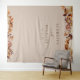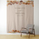 Esta tapeçaria de casamento elegante | fundo de cabine de fotos apresenta folhas queimadas e terracota pintadas à mão em aquarela, dálias creme e bege, e belas rosas cor de ferrugem em um fundo taupe com os nomes dos noivos e data do casamento. Encontre itens correspondentes na Coleção Romance Outonal Taupe.