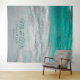 Decoração de tapeçaria temática de casamento na praia branca turquesa costeira. Recepção tropical das ondas do oceão de verão náutico, cenário do photo booth. Lindo, chique, moderno, legal, elegante banner personalizado. Sr. e Sra., nomes e datas personalizados. Direitos autorais da imagem Marg Seregelyi Photography.