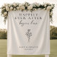 Sua história de amor está prestes a alcançar sua felicidade para sempre. Anuncie este marco alegre com a tapeçaria de casamento "Feliz Nunca Depois de Começar Aqui". Apresentando um simples, elegante design preto e branco com um contorno floral minimalista, esta peça define o tom perfeito para seu dia especial. Esta tapeçaria é uma obrigação para o seu casamento. Sua estética limpa e clássica complementará qualquer estilo de casamento, da rusticidade ao moderno. Use-o como um incrível cenário fotográfico para capturar memórias que durarão uma vida inteira. Incorpore-o no seu decoro de recepção para criar uma atmosfera de amor e celebração. Não importa como você escolha exibi-lo, esta tapeçaria elevará seu casamento e iniciará seu começo feliz para sempre.