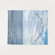 O design do tapete para casamento temático Debaixo do Mar apresenta um fundo com imagem realista do céu encontrando o oceano, um arco-íris tênue pode ser visto à direita. Os nomes do casal são exibidos em letras azuis encantadoras em forma de arco no céu. Projetado para combinar com o Conjunto de Casamento Debaixo do Mar.