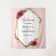Elegante hambúrdia vermelha rosa-chic e tapeçaria de casamento dourada com lindas flores e folhas verdes. Uma fusão encantadora de elegância e encanto romântico. Estes belos convites estão em tons rosas e vermelhos ricos. A caligrafia é elegante e chique e pode ser facilmente personalizada. Convites românticos e modernos de casamento floral com cores clássicas que nunca saem do estilo.