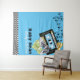 Personalize chá de bebê de Hip Hop retrô dos anos 80/90 para um MENINO com fita cassete retrô azul com etiqueta personalizável; sapatos de berço xadrez preto e branco e gravata borboleta dourada; Uma pilha de notas de cem dólares e notas musicais voando.