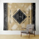 Torne o 1º aniversário de casamento de papel uma celebração inesquecível com esta tapeçaria comemorativa! Letras elegantes em branco e preto com confetes hexagonais em um fundo de papel envelhecido bordeado por barras pretas adicionam um toque memorável para esta ocasião especial e marco. Personalize com os nomes do casal, datas de casamento e mensagens de congratulações.