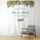 Cena de casamento com laranjas para cabine de fotos, personalizada com seus nomes e data. Fácil de mudar para qualquer festa.