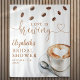 Este fundo de foto de chá de noiva elegante apresenta grãos de café e uma xícara de café, juntamente com tipografia elegante que pode ser personalizada com seu nome e data especial. Projetado por Thisisnotme©