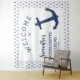 Tapeçaria personalizada com tema costeiro náutico para festa de despedida de solteira em azul marinho e branco com uma âncora é perfeita como pano de fundo para fotos da festa de despedida de solteira. Celebre o seu chá de noiva com estilo com o tema perfeito de festa de praia náutica em rosa ousado, o tema perfeito para a noiva nostálgica e vintage e suas damas de honra.
