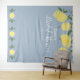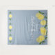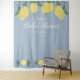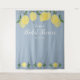 Com limões e folhagens em um fundo azul empoeirado, este fundo fotográfico botânico elegante para chá de noiva pode ser personalizado com as informações do seu evento especial. Criado por Thisisnotme©