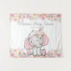 Cena de fundo de chá de bebê de elefante menina com adorável elefante bebê menina com fita no cabelo em um lindo fundo floral em aquarela rosa e amarelo. Você pode adicionar o texto de sua escolha e alterar a cor do fundo nesta adorável cena de fundo de chá de bebê de elefante.