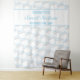 Cena de fundo para festa de aniversário de 16 anos em azul bebê e prata - perfeita para photobooth, sinal de boas-vindas ou apenas como uma grande peça de decoração de festa para ajudar a definir o tema. O design tem um padrão diagonal, em repetição escalonada, de Sweet Sixteen, que é escrito em caligrafia espiralada e tipografia elegante. O modelo está pronto para você adicionar o nome da aniversariante e a data do evento.