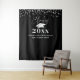 Fundo personalizável para foto de formatura moderno com um fundo preto editável e borda de confete brilhante prateado, texto manuscrito "TURMA DE", chapéu de formatura branco e ano da turma personalizado com o seu texto, como Parabéns Nome, o nome da sua escola, um lema da turma, etc. O fundo preto é editável para mudar para as cores da sua escola ou tema da festa. Use como um adereço para fotos em uma cerimônia de formatura ou festa de formatura. OPÇÕES DE TAPETE: A amostra é mostrada no tamanho 68x80" - outros tamanhos estão disponíveis na página de pedidos. ASSISTÊNCIA: Para obter ajuda com modificação de design ou personalização, alteração de cor, redimensionamento, transferência do design para outro produto ou se você gostaria de itens coordenados, entre em contato com o designer ANTES DE FAZER O