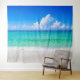 Esta divertida tapeçaria de destino de cena de praia tropical apresenta uma praia de areia branca, mar azul turquesa e pode ser usada em seu quarto, sala de estar ou escritório, quarto de dormitório universitário ou como pano de fundo para cabine de fotos para sua festa de aniversário de praia tropical ou outra celebração. Fotografia da praia e das palmeiras tirada na Ilha Grande do Havaí e design © por TK Goforth.