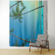 Esta tapeçaria de destino de cena de praia tropical divertida apresenta uma praia arenosa tropical, oceano azul turquesa, um barco de pesca e elegantes palmeiras de coco e pode ser usada em seu quarto, sala de estar ou escritório, quarto de dormitório universitário, ou como pano de fundo para cabine de fotos para sua festa de aniversário de praia tropical ou outra celebração. Fotografia da praia e palmeiras tirada na Ilha Grande do Havaí e design © por TK Goforth.