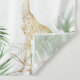 Cenário de festa de aniversário de 1 ano com tema safari neutro e elegante, apresentando folhagem tropical, animais da selva em dourado falso (leão, girafa e macaco), confetes dourados e um modelo de aniversário moderno e fácil de personalizar. Ótimo para sessões de fotos e para adicionar à decoração da festa!