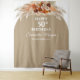 Pano de fundo de aniversário de palmeira de grama pampas tropical boho, tapeçaria de fundo de aniversário, banner de festa,