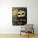 Cenário de festa de aniversário com máscara com bela máscara de mascarada dourada em um belo fundo bokeh preto, dourado e branco. Este lindo cenário de festa de mascarada preto e dourado é facilmente personalizado com o texto de sua escolha. Você pode alterar a cor do fundo e do texto.