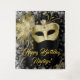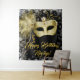 Cenário de festa de aniversário com máscara de mascarada dourada em um belo fundo bokeh preto, dourado e branco. Este belo cenário de festa de mascarada preto e dourado é facilmente personalizado com o texto de sua escolha. Você pode alterar a cor do fundo e do texto.