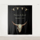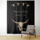 Cenario de foto de casamento rústico ocidental com caveira de touro bege, preto, estilo vintage, antigo. Desenho de cenário de estilo fazenda country antiga. Adereço de casamento inspirado no cowboy do oeste selvagem. Quatro caveiras em um padrão com tipografia personalizada de nome e data. Suprimentos de festa de animais de fazenda modernos e legais. Direitos autorais da imagem Marg Seregelyi Photography.