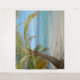 Palmeiras tropicais sobrepõem o oceano aqua calmante, tiradas em uma praia em Southwater Caye, Belize.