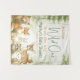 Entre num bosque encantado cheio de amor e risadas. Este design em estilo aquarela apresenta uma reunião encantadora de bebês animais da floresta - como cervos, raposas, guaxinins, filhotes de urso, corujas, coelhinhos e ouriços - aninhados entre samambaias macias, cogumelos e árvores altas. Com um cenário florestal sonhador e tons naturais aconchegantes, este design cria uma cena terna e de conto de fadas, perfeita para celebrar a chegada de um pequeno. É uma maneira suave e emocionante de dar as boas-vindas ao seu bebê no mundo.