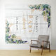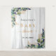 Um fundo rústico de madeira branca. Decorado com folhas de eucalipto coloridas em verde, raminhos, folhagens e folhas de ouro falso. Personalize e adicione o nome da futura mamãe e uma data. Letras pretas e douradas. Pode ser usado como um banner de boas-vindas para chá de bebê, como decoração de parede para festa ou como fundo para cabine de fotos.