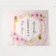 Tapeçaria elegante e divertida para chá de bebê de verão. Fundo em dourado rosa, celebrando uma menina. Com uma moldura geométrica em dourado falso. Decorado com flores tropicais cor-de-rosa, hibiscos e abelhas felizes. Personalize e adicione um nome e uma data. Com o texto: Mamãe Abelha e Chá de Bebê escrito em uma fonte com estilo de letra manuscrita. Pode ser usado como decoração de parede para o chá de bebê ou como fundo para fotos.