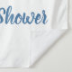 Para um Chá de Bebê elegante. Um fundo branco chique. Decorado com gotas de brilho falsas, efeito de tinta pingando, brilho, serpentinas de festa, balões azuis e prateados e um adorável elefante bebê menino. Personalize e adicione o nome e uma data.
