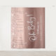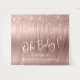 Uma elegante e luxuosa tapeçaria de boas-vindas para o seu chá de fraldas que apresenta o brilho do rosa dourado pingando do topo e "Oh Baby!" em um roteiro branco na moda contra um fundo rosa dourado ombre. Você pode personalizar facilmente o nome da futura mãe.