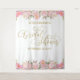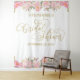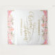 Fundo de cabine de fotos para o seu chá de noiva. Este design personalizado apresenta caligrafia elegante e arranjos florais de aquarela de flores rosa e douradas com um toque de verde. O modelo está configurado para você personalizar com o nome da noiva e a data da ocasião. Chá de Noiva é escrito à mão em caligrafia espiralada. Por favor, explore minha loja para encontrar convites, placas e etiquetas coordenadas.