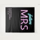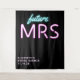 Toalha de mesa preto personalizado "future Mrs" moderno e legal para o seu chá de noiva, com "future" e "MRS" escritos em azul turquesa e rosa choque com efeito de luzes de neon. Você pode personalizar com seu nome e data do chá. O canto inferior é deixado em branco para uma área para seus convidados tirarem fotos.